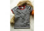 Dětské pruhované triko vlastní výroby. Triká má lem u krku a krátký rukáv.